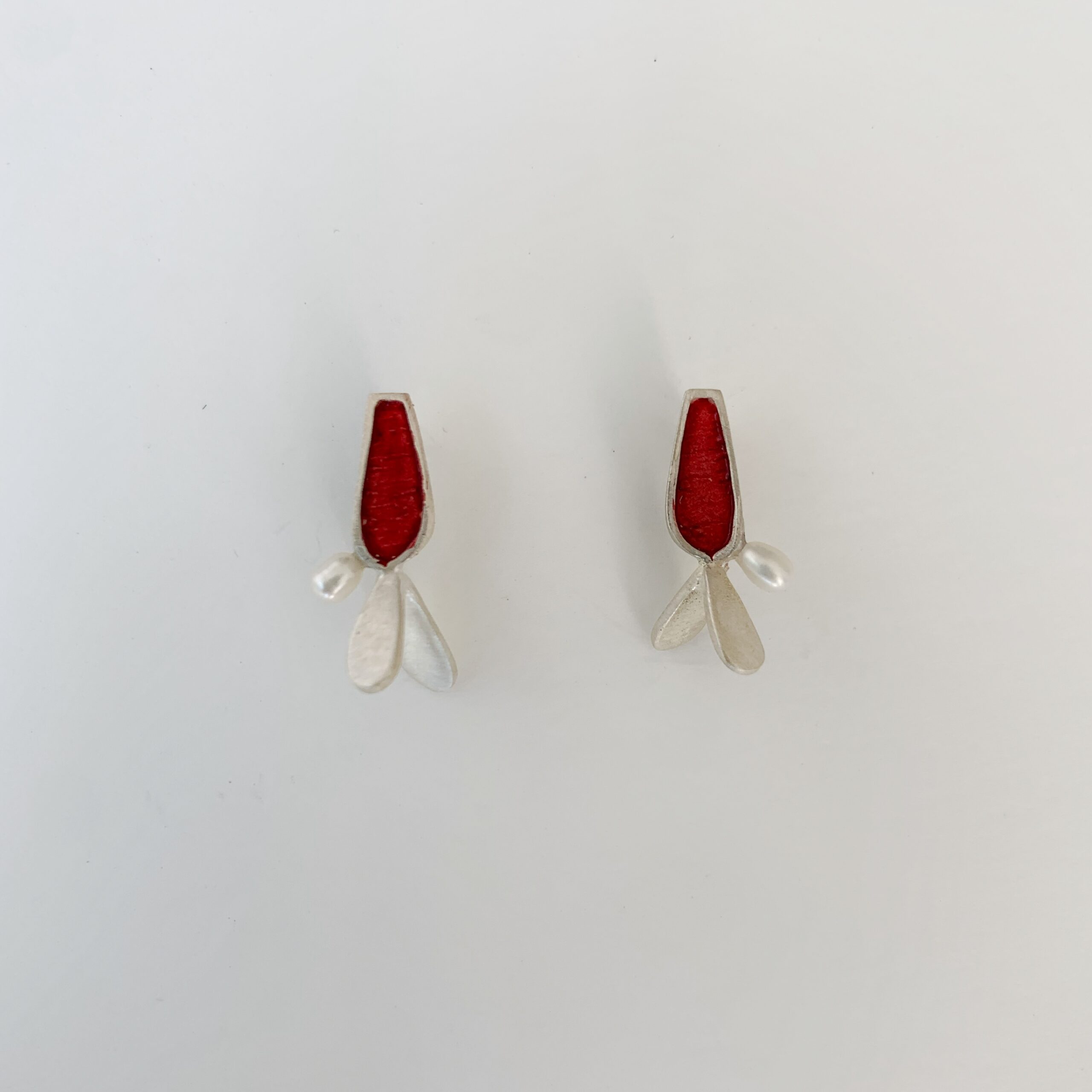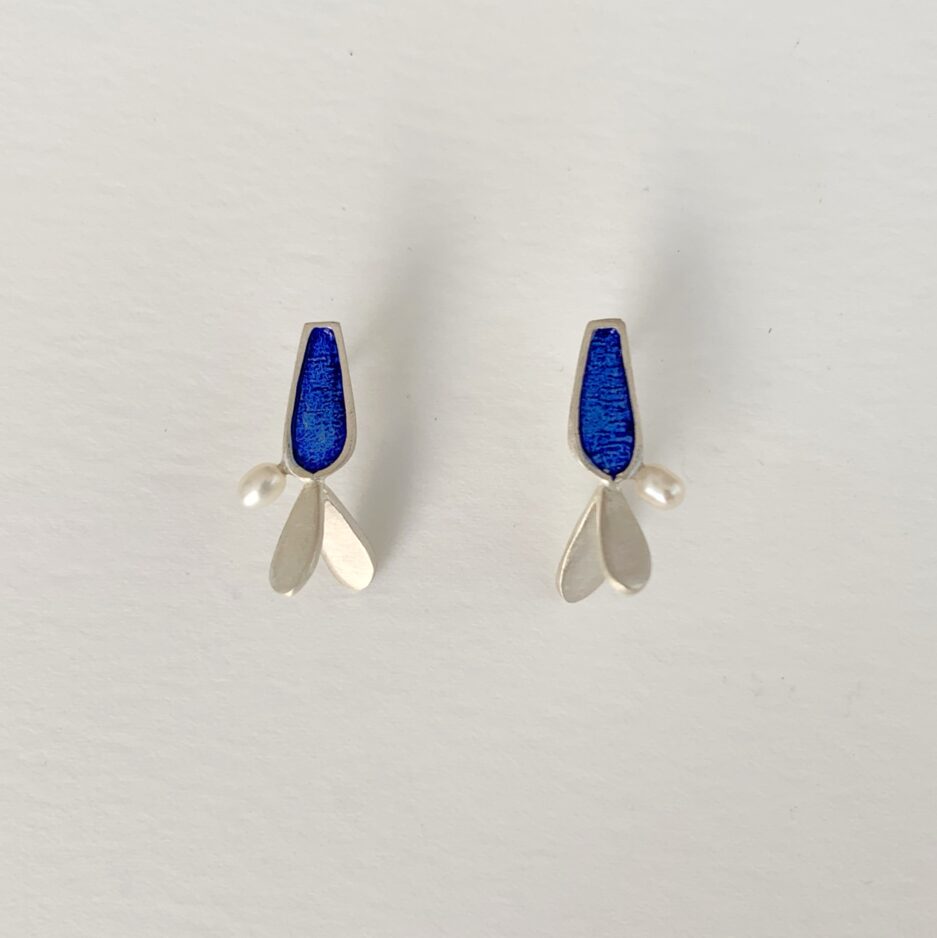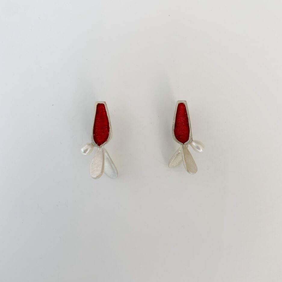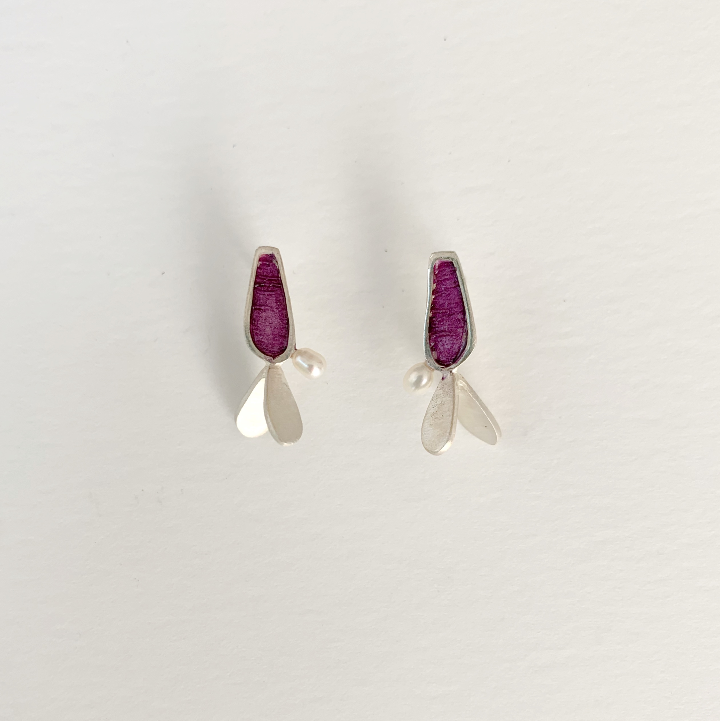 Materials: sterling silver, paper inlay, fresh water pearl.