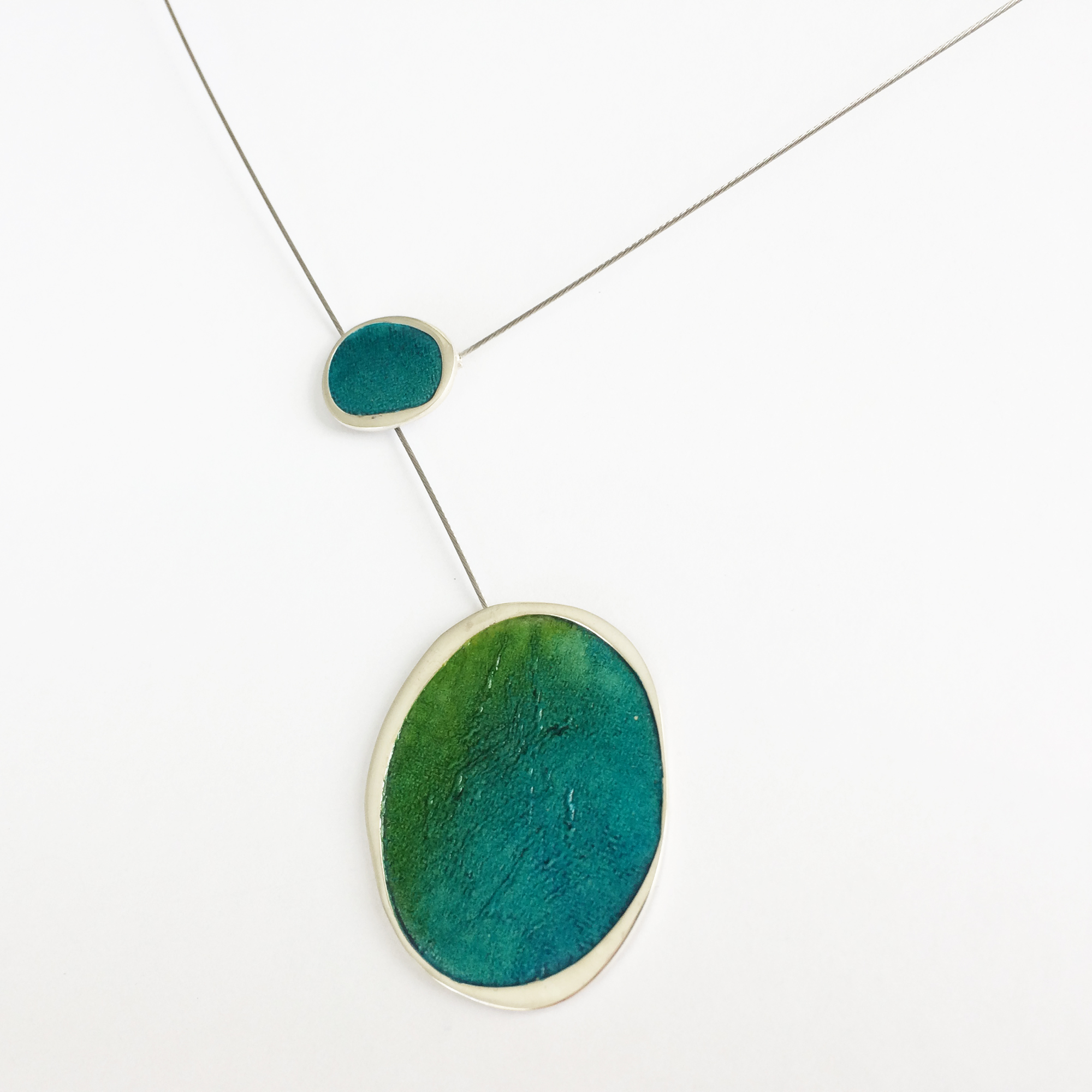 Inspired by Alexander Calder and Joan Miró, the Bubbles collection makes a bold, colorful statement. It features a constellation of organic forms in vibrant hues—reds, magentas, turquoises, greens, yellows, and blues in varying tones. Each shape seems to float in space, evoking movement and harmony. The composition merges geometric simplicity with organic rhythm, transforming color and form into a poetic balance—a joyful dialogue between art and adornment.